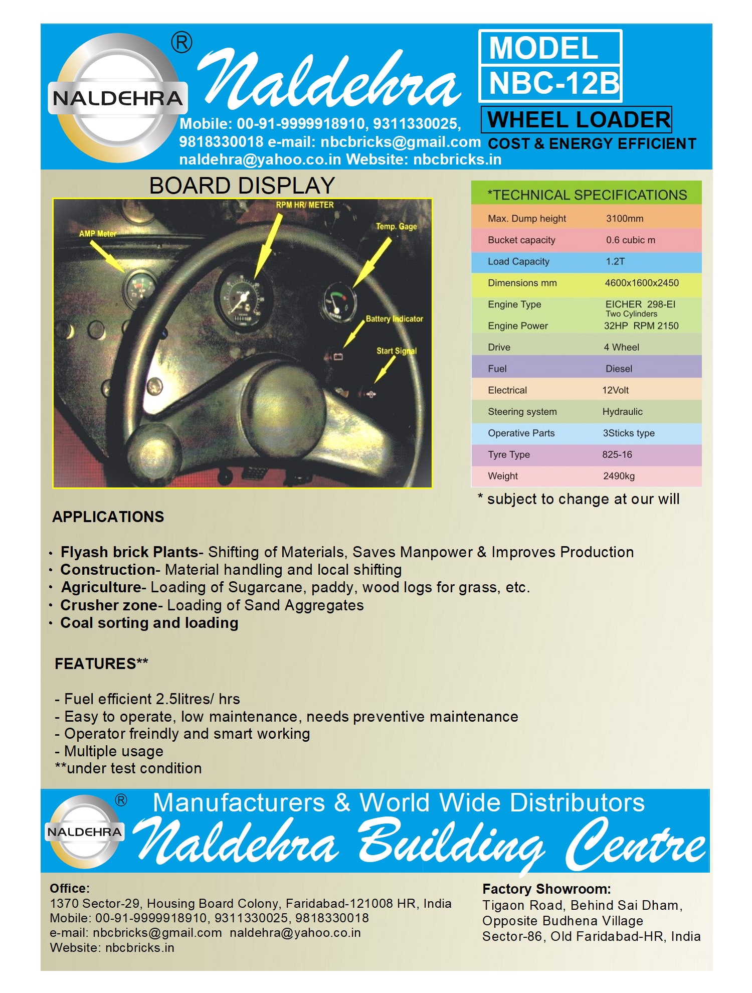 | In construction industry there has been a large demand of fly ash brick loaders and wheel loaders. Naldehra building centre are reputed manufacturers and worldwide distributors of fly ash brick loaders and wheel loaders. Our fly ash brick loaders handle labor shortage and increase the production decrease cost. Below are technical specifications and applications of our fly ash brick loaders and wheel loaders. |